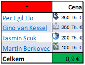 2. Jaroslav Mihalík - o té částce 1 mil. euro se zmiňuje transfermarkt, mluví se o tom např. zde https://isport.blesk.cz/clanek/fotbal-1-liga-rocnik-2016-17/290470/mihalik-jde-do-cracovie-uvidi-se-zda-stoji-za-milion-eur-pisi-v-polsku.html , jinde se zmiňuje částka nižší např. 650 tis. Eur https://futbal.pravda.sk/ostatne/clanok/416947-talentovany-slovak-sa-v-slavii-neujal-mihalik-skusi-stastie-v-polskej-cracovii/
